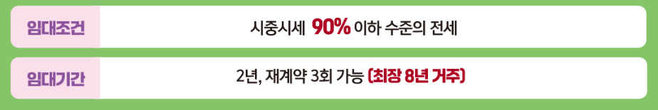 - 임대 기간: 초기 2년 계약, 3회 재계약 가능하여 최장 8년 거주 가능