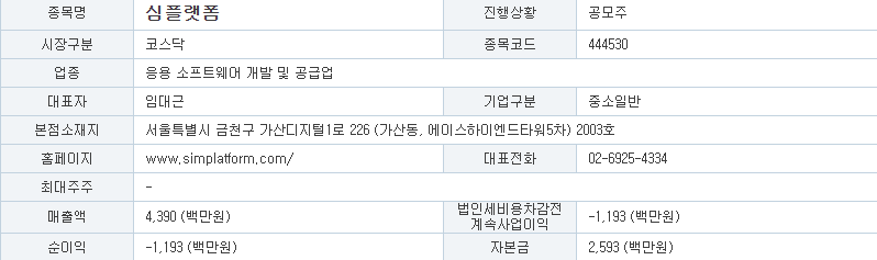 그럼 본격적으로 심플랫폼 수요예측 결과 확정 공모가 청약일 상장일 투자 여부 정리에 대해 알아보도록 하겠습니다.