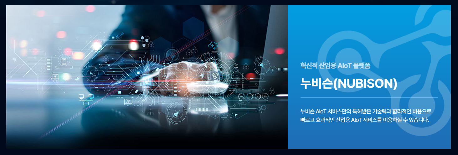 주력 제품인 '누비슨'은 데이터 수집부터 분석, 적용까지 원스톱으로 제공하는 통합 AIoT 플랫폼입니다. 이 솔루션을 도입한 공장에서는 온도, 습도 관리뿐만 아니라 설비 오류를 미리 감지할 수 있어 인력 부담이 크게 감소한다는 장점이 있습니다.