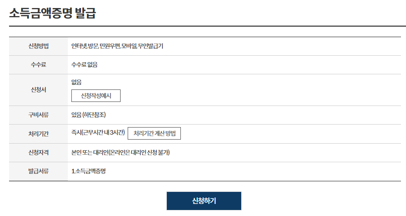 소득확인증명서의 발급 절차