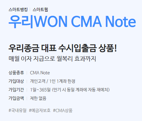 | 상품명 | 우리WON CMA Note |