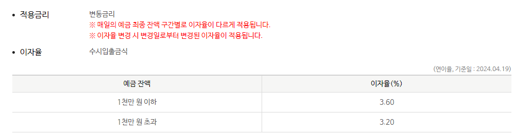 | 상품유형 | 수시입출금식 |