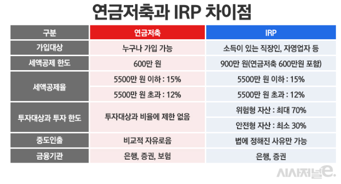 | 구분 | 연금저축계좌 | IRP |