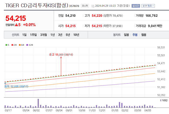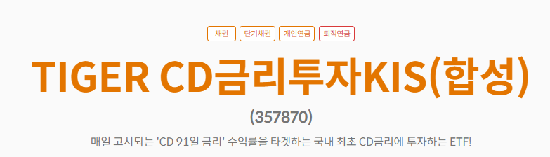 | 상품명 | TIGER CD금리투자KIS(합성) |