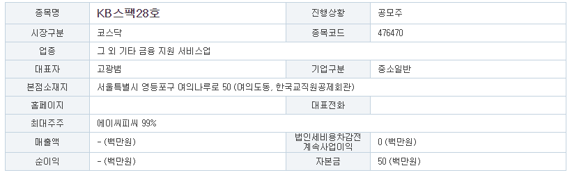 | 기업명 | 케이비제28호스팩(KB제28호스팩) |
