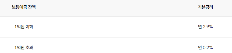 | 금리 | 1억원 이하 연 2.9%, 1억원 초과 연 0.2% |