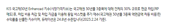| 기초지수 | KIS 국고채30년Enhanced지수 |