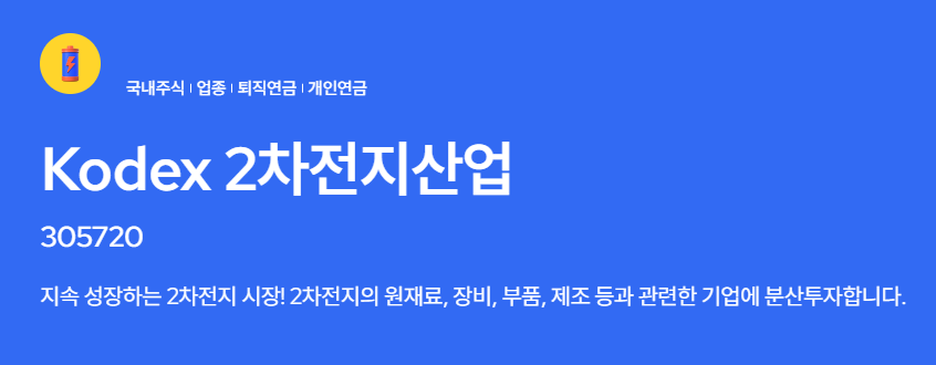 이 ETF는 2차전지의 원재료, 장비, 부품, 제조 등 밸류체인 전반을 아우르는 기업에 투자하는 상품입니다. 2차전지 산업의 성장과 함께 수익을 얻고 싶으신 투자자분들께 매력적인 옵션이 될 수 있을 것으로 기대됩니다.