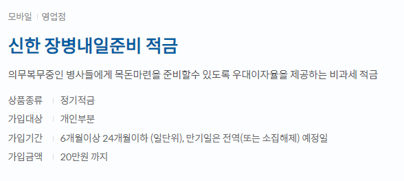신한은행 장병내일준비적금 혜택(비과세, 매칭지원금)