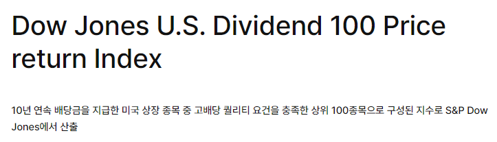 - 기초지수: Dow Jones U.S. Dividend 100 Price Return Index