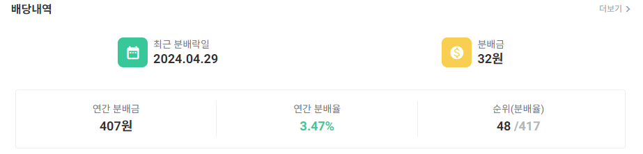 | 분배락일 | 기준가격 | 분배금액 | 분배율 |