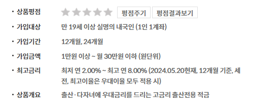 | 최고금리 | 연 8.00% (기본금리 + 우대금리 모두 적용 시) |