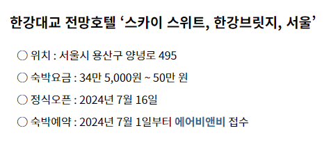 한강대교 호텔 스카이 스위트 위치 정식 오픈일 예약일 숙박 요금 장점 혜택